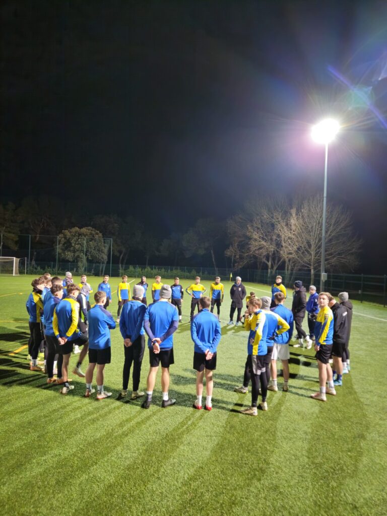 Viel Zeit zum Verschnaufen blieb nicht – bereits um 11:00 Uhr stand die erste Trainingseinheit auf dem Kunstrasenplatz am Programm. Nach dem Mittagessen wurde der restliche Sonntag aufgrund der kurzen Nacht im Bus zur Regeneration und für Teambuilding-Maßnahmen genutzt.
